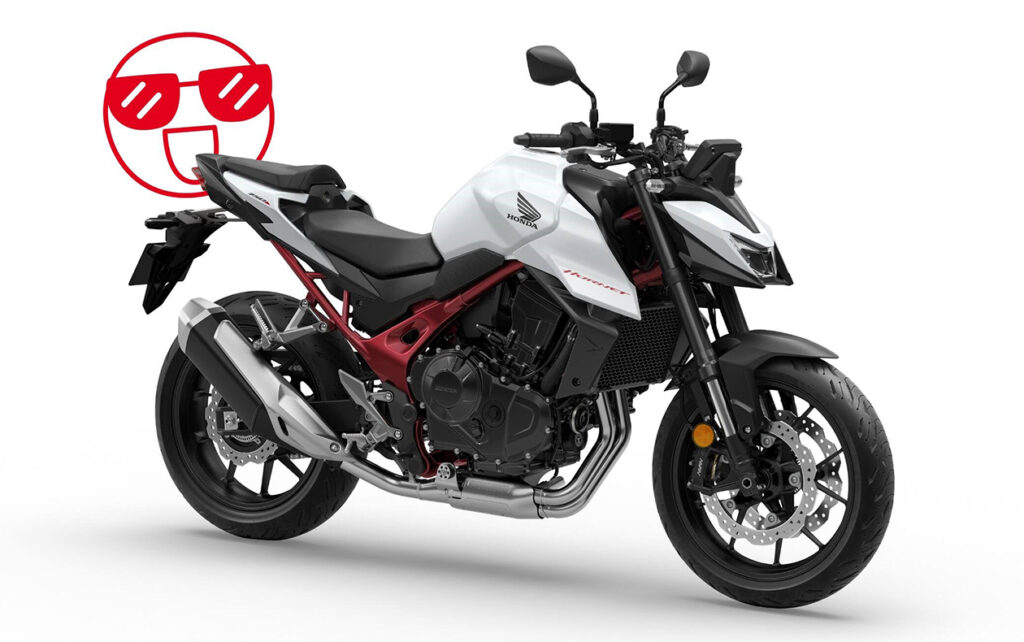 A CB750 Hornet (acima) oferece uma mudança de atitude e um estilo irreverente. Com muita personalidade e um revolucionário motor bicilíndrico, a Hornet de média cilindrada promete diversão sem fim. Com alterações importantes em 2025, a CB750 Hornet ficou mais apetecível, agora por apenas 7.550€ com oferta de Honda Plus.