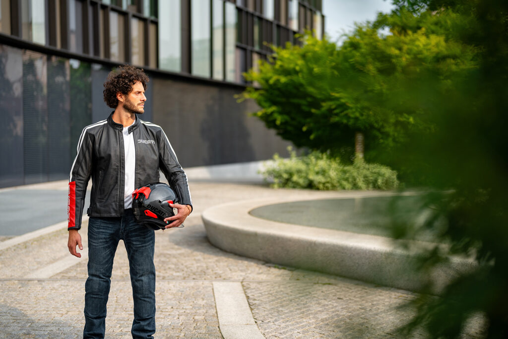 O blusão Heritage C3, disponível em preto para homens e branco para mulheres, oferece uma reinterpretação moderna do estilo dos anos de 1980, ao combinar linhas gráficas limpas com uma inserção vermelha que destaca o logotipo da Ducati. Produzido pela Dainese e certificado de acordo com as mais recentes normas de segurança, é feito em couro de vaca macio para ser usado na moto. Disponível nas versões standard e perfurada, esta peça foi concebida para condutores urbanos que apreciam o estilo de inspiração vintage sem comprometer a modernidade.
