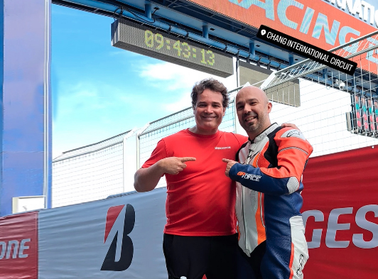 A Bridgestone afirma que os seus novos pneus desportivos RS12, a ser apresentados na Tailândia neste momento com a nossa presença, (abaixo, Fernando Neto com o Campeão Mundial de Resistência Karel Hanika) oferecerão o “mais alto nível de aderência em piso seco” da gama Battlax.