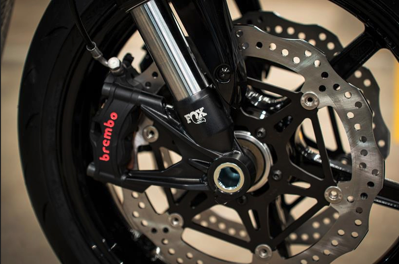 As rodas dianteiras e traseiras têm 17 polegadas, para uma escolha decente de pneus para estrada, com garfos Fox invertidos e um amortecedor monobloco para companhia na traseira, além de pinças Brembo monobloco montadas radialmente.
