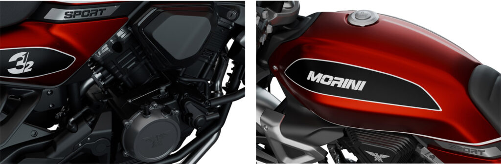 Voltando à nova 3½ Sport, a própria Morini afirma que esta tem 32,2 cv às 8.500 rpm, potência compatível com a licença A2, e 30 Nm de binário às 5.500 rpm. Não é uma potência que vá arrancar braços, mas está dentro do esperado para rivais modernos como a BSA Bantam 350, que voltou a ser utilizada, e superior a outras do segmento como a Honda GB350S.