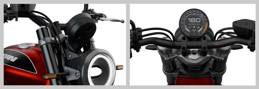 O pequeno motor V-twin de 8 válvulas cumpre as normas Euro 5+ e é fixado por um chassis de aço simples com braço oscilante de alumínio. A altura do assento é também de apenas 795 mm, com o motor alimentado por um depósito de combustível de 15,5 litros localizado à frente do assento plano do piloto.