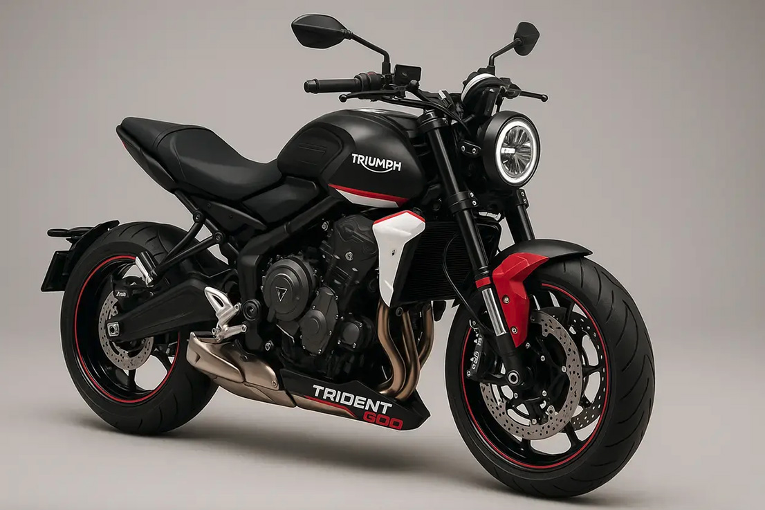 Será uma naked desportiva com configurações mais agressivas que a Trident, equipada com o mesmo motor de três cilindros, mas com dimensões específicas.