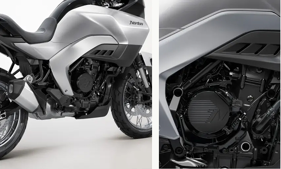 Ambas as motos estão equipadas com um motor bicilíndrico paralelo de 585 cc com cambota de 270 graus. Novamente, a Norton não divulgou números, mas, analisando aleatoriamente outra moto de aventura de cilindrada semelhante, como a QJMotor SRT 600 S de 554 cc, vemos que declara 55 cv e 5,4 kg/m de binário.