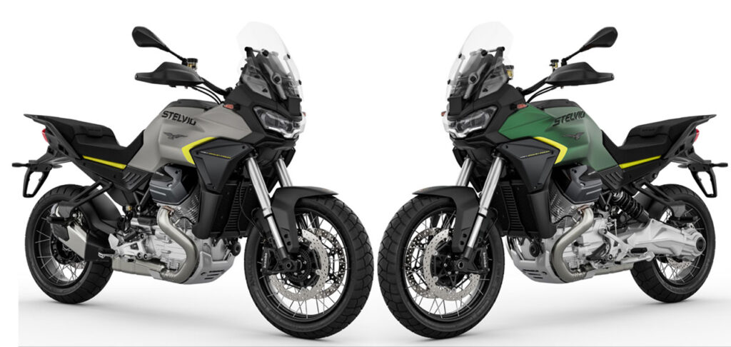 É sobretudo o caso da sport-tourer Stelvio, lançada em 2024, que utiliza a mais recente geração do motor bicilíndrico em V transversal, debitando até 115 cv e 105 Nm de binário. A Moto Guzzi mais orientada para o turismo e tecnologicamente avançada está agora disponível em duas novas variações de cor: Grigio Climbing (cinza) e Verde Hiking (verde).