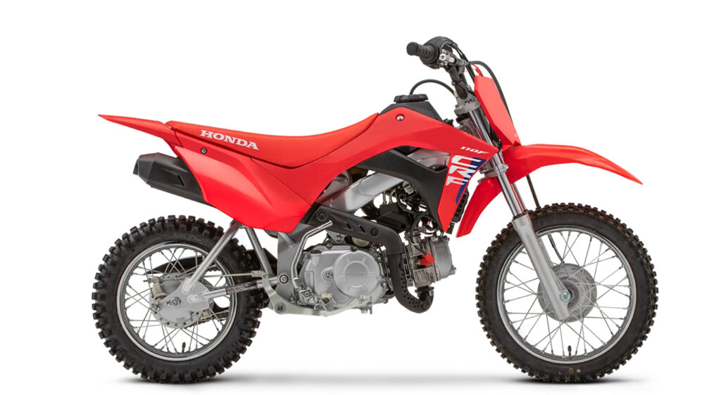O motor a quatro tempos, de 109 cc, é robusto e oferece enorme facilidade de condução, com potência suave e fácil de utilizar. Juntamente com a caixa de 4 velocidades com sistema automático, a CRF110F torna-se ainda mais amigável de pilotar. O arranque e mudanças de velocidade são mais suaves e fáceis do que uma caixa de velocidades convencional.