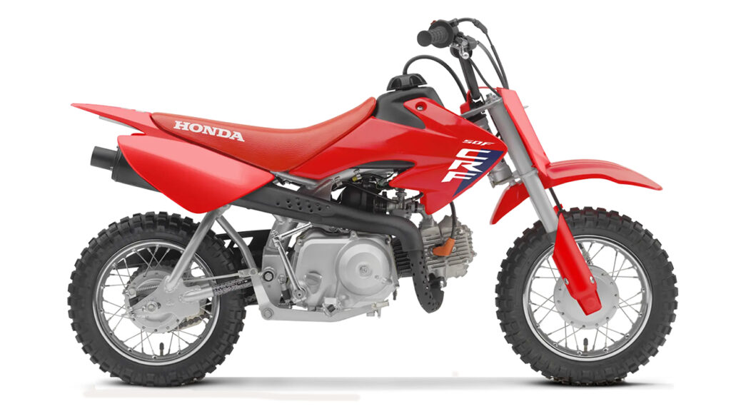 Fácil de começar, fácil de utilizar e sempre divertida. A CRF50F é a escolha dos motociclistas principiantes em todo o mundo. A sua forquilha invertida, o motor de 49 cc, caixa de velocidades de mudança fácil com embraiagem automática e baixa altura do assento tornam a CRF50F muito fácil de utilizar. Construída para ser forte e sólida, com o estilo de uma moto grande e novos gráficos arrojados, esta CRF permitirá os primeiros metros de diversão dos condutores mais jovens da família a chegar ao vermelho – vermelho Honda.