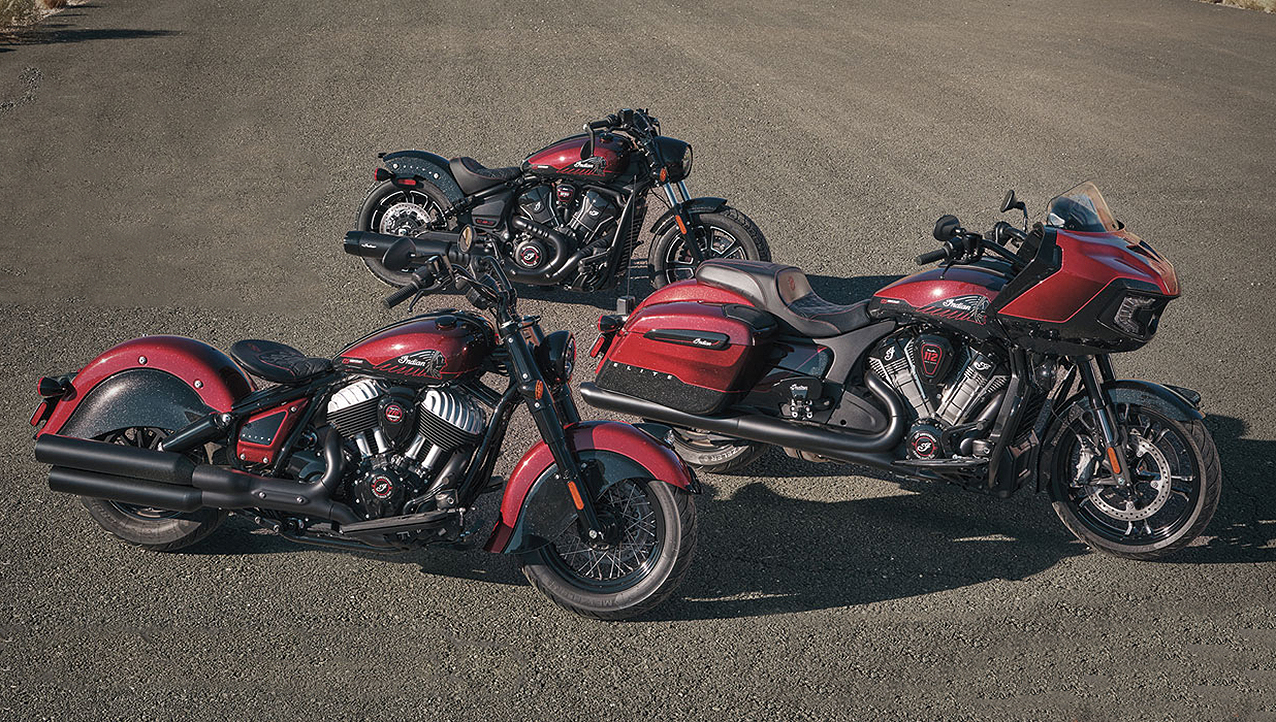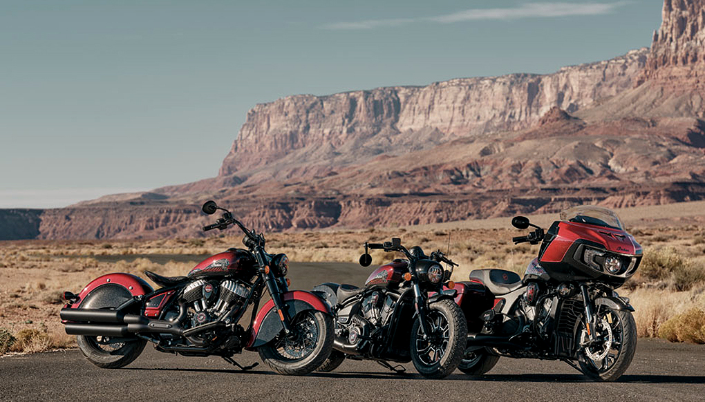 A pintura base começa com o icónico Vermelho Indian Motorcycle e é depois melhorada com microflocos metálicos que criam uma estética mais rica e dinâmica, conferindo à linha uma presença distinta, diferente de tudo o que a Indian Motorcycle já produziu.”