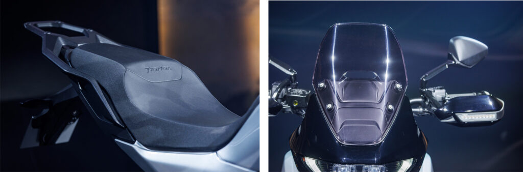 Ambas as variantes receberão faróis projetores LED, ecrã TFT touchscreen de 8 polegadas, cruise control e IMU de seis eixos sensíveis à inclinação como ajudas ao condutor. Garfos ajustáveis, interruptores retroiluminados, malas de três peças, protetores de motor e protetores de mãos com indicadores integrados também foram vistos no Salão de Milão.