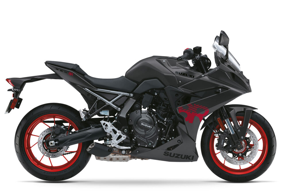 O primeiro modelo a receber uma ligeira atualização é a premiada desportiva GSX-8R, que foi apresentada no final de 2023. Como parte do novo visual, a GSX-8R está agora disponível em branco com jantes azuis. Há também uma nova variante em preto mate com jantes vermelhas, enquanto a tradicional cor Azul Metálico Triton se mantém, embora agora com jantes pretas em vez das cinzentas.