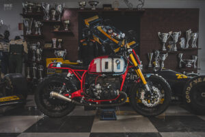 Trata-se de uma R100RT de 1982, que foi levada pela primeira vez à oficina da Bolt Motor Co. com uma quilometragem muito elevada e com um aspeto um pouco desgastado. O cliente disse que queria uma construção estilo scrambler com uma boa condução, aliada à aparência de uma moto moderna. Mas Bolt ainda teve a margem de manobra necessária para criar algo único no seu estilo característico.