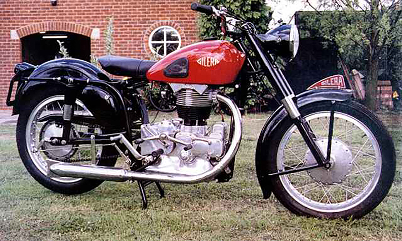 Aos 22 anos, em 1909, Guiseppe Gilera construiu a primeira moto do seu próprio projeto numa pequena oficina em Milão. Venceu uma corrida de montanha com essa máquina no mesmo ano. Em 1911, fundou uma modesta equipa de corridas Gilera e participou em muitas corridas regionais.