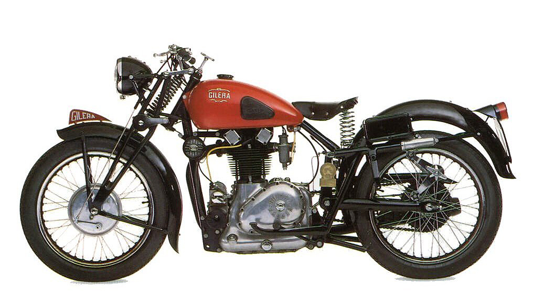 Aos 22 anos, em 1909, Guiseppe Gilera construiu a primeira moto do seu próprio projeto numa pequena oficina em Milão. Venceu uma corrida de montanha com essa máquina no mesmo ano. Em 1911, fundou uma modesta equipa de corridas Gilera e participou em muitas corridas regionais.