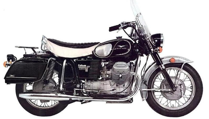 Nos anos setenta do séc. XX, surge a 850T e depois a V1000 California, (acima) feita especialmente para ganhar o concurso de fornecimento à Polícia americana, cujo caderno de encargos tem uma redação, feita a pensar na Harley-Davidson, que especifica um bicilíndrico em V. Com a ajuda da Polícia de Los Angeles, que ajudou a elaborar a especificação do modelo, a Moto Guzzi triunfa onde a Ducati falhara, e várias forças como o LAPD e a Brigada de Trânsito da California usam a moto.