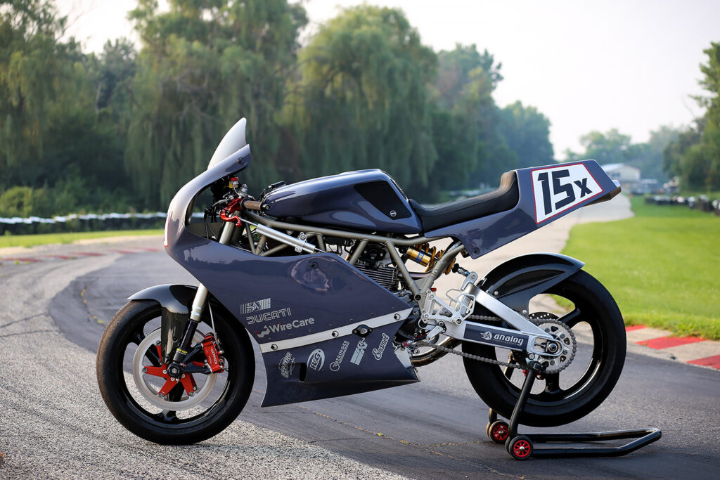 A equipa também equipou a moto com avanços Vortex, conjuntos traseiros Woodcraft e deslizadores de quadro e eixo R&G Protection. A Ducati completa o visual com um impressionante sistema de escape em aço inoxidável. “Fizemos o primeiro fim de semana de teste em agosto no Blackhawk Farms Raceway e voltamos para casa com dois troféus de primeiro lugar conquistados com muito esforço. Um grande agradecimento ao Del por confiar em mim para o projeto e me permitir correr com as suas motos.”