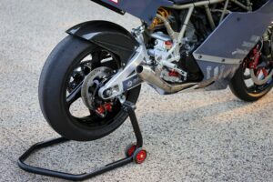 A Analog reformulou a Ducati de cima a baixo, adicionando uma ECU Microtec e um painel AIM com recursos de registro de dados. A Wirecare, patrocinadora da Analog, forneceu as mangas de fiação trançada, a blindagem térmica e as tubulações e conexões de óleo.