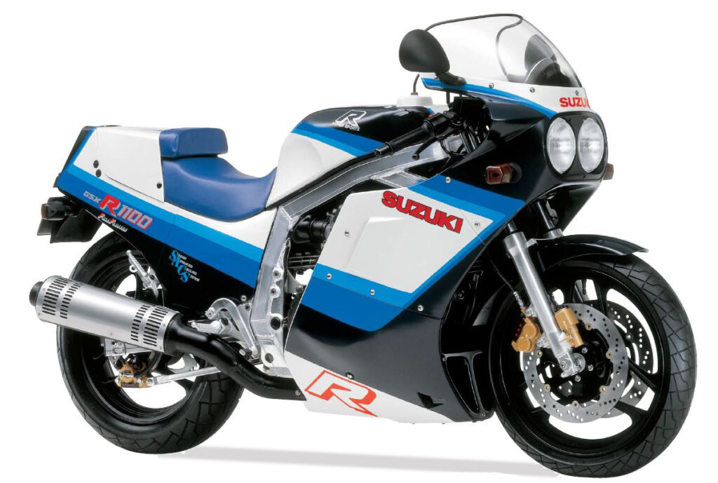 Foi já em 1985, há portanto 40 anos, que a Suzuki virou a cena das desportivas praticamente de pernas para o ar com o lançamento da sua GSX-R 750R. logo seguida. um ano depois, pela igualmente emblemática GSXR1100.