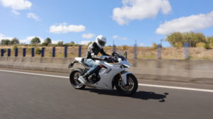 Nos primeiros quilômetros percebemos que o binômio de desportividade e conforto está muito bem conseguido, não sentimos pressão nos pulsos e o defletor de vento ajustável oferece-nos uma protecção aerodinâmica bastante razoável. A Ducati Supersport não deixa de nos convidar a posicionar de uma forma mais agressiva de forma retirarmos todo o prazer da sua pilotagem. Ainda assim, consegue proporcionar uma utilização diária surpreendente, por ser ágil e esguia.