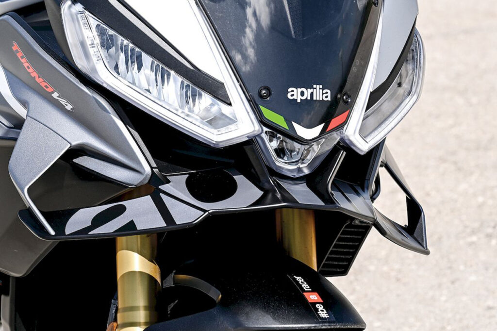 Serviu este preâmbulo para vos dizer que a Tuono V4 deixou em mim uma impressão duradoura. Dotada de uma ciclística que baseia a sua eficácia num eixo da frente infalível, a confiança que entrega ao condutor sempre fez dela uma das hypernakeds mais divertidas de pilotar. Nesta sua mais recente versão o V4 ganhou uns quantos cavalos, a electrónica foi arranjar as unhas, o conjunto tornou-se um pouco mais confortável e inevitavelmente, também aumentou os seus apêndices aerodinâmicos.