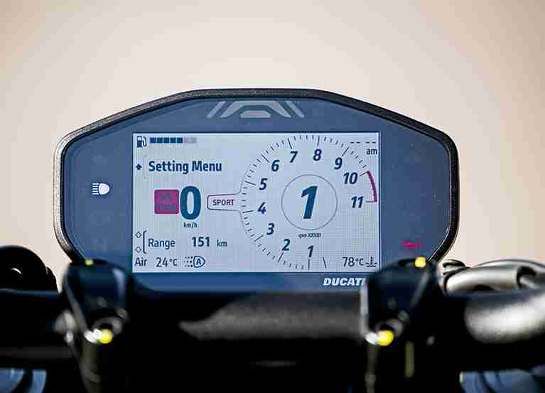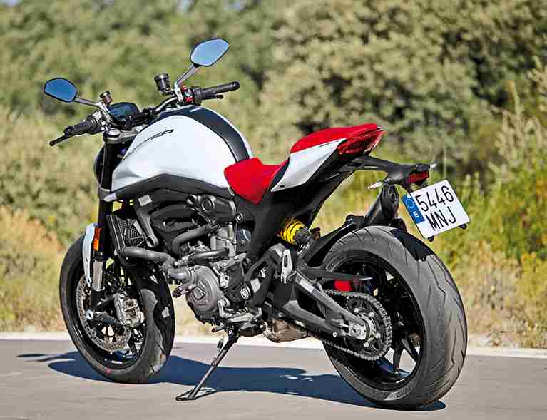 Assim, a Ducati declara 111 cv às 9250 rpm e 93 Nm às 6500 rpm, recorre a corpos de injecção de 53 mm, mantém o característico sistema Desmodrómico e inclui embraiagem hidráulica deslizante e assistida da Brembo. Como curiosidade, o bloco é 2,6 kg mais leve que na antiga 821.