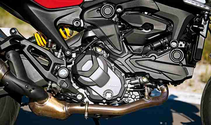 A Ducati Monster equipa o equilibrado motor bicilíndrico em V a 90º Testastretta de 937 cc com cabeças de quatro válvulas com 11º de cruzamento e refrigeração líquida, já conhecido nas Multistrada V2, DesertX, Hypermotard 950 e Supersport 950, se bem que a eletrónica foi convenientemente retocada para se adaptar aos novos requisitos Euro 5.