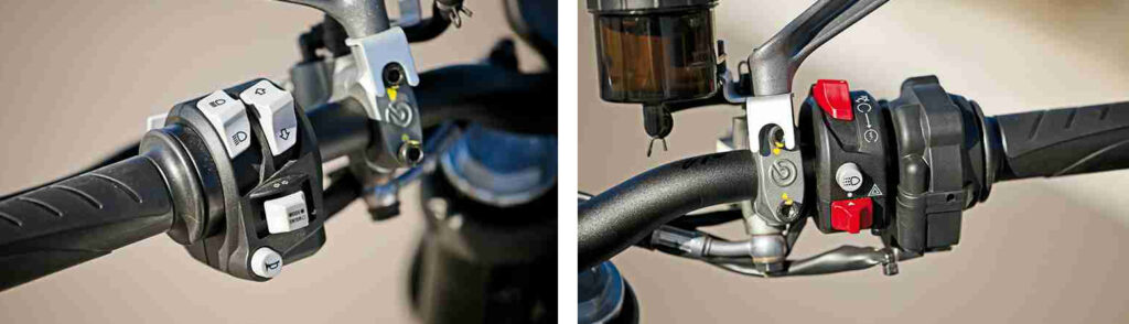 A parte ciclística completa-se através da utilização da forquilha invertida de 43 mm (sem regulação) e monoamortecedor traseiro sem bielas (ajustável na pré-carga da mola). Guiador de alumínio, pinças de travão dianteiras radiais Brembo monobloco M4.32, bombas de embraiagem/travão radiais com depósito independente, pneus Pirelli Diablo Rosso III, piscas com auto-cancelamento e tomada de corrente USB, também fazem parte do equipamento de série.