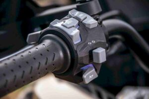 Outro elemento incluído no preço é a grade porta-bagagens, que pode receber um opcional conjunto de três malas “by Loboo” de alumínio e tampa superior, que no total permitem arrumar 99 litros de objetos, tudo por apenas 998 euros. Uma solução que casa na perfeição com o design da moto e que cria o pacote perfeito para uma viagem a dois por vários dias, até porque o depósito de combustível tem uma capacidade de 17,6 litros, evitando reabastecimentos constantes. Mas não acabam aqui os detalhes que tornam a Voge 625 DSX uma moto completa e extremamente tentadora tendo em conta o que custa. Os botões são retroiluminados num atraente tom de azul, algo muito útil de noite e que contribui para a aparência cara da moto chinesa.