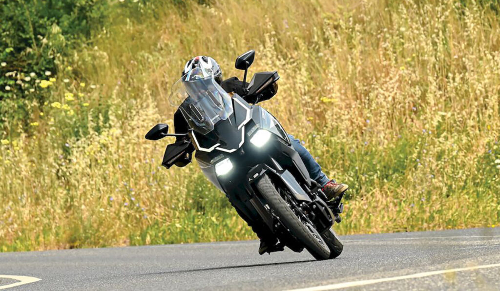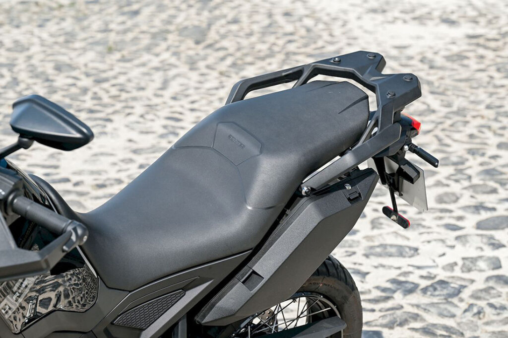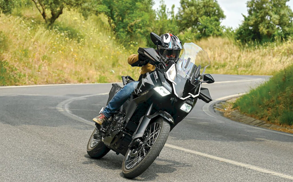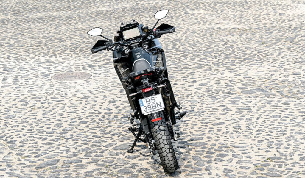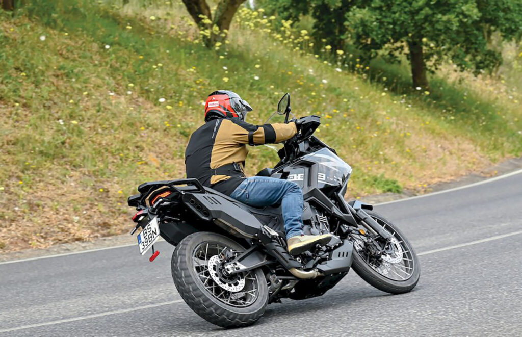 Em estrada, o seu comportamento cumpre mas sentimos falta de ajustes nas suspensões mais firmes, mas o conjunto funciona muito bem. Fora de estrada mostra-se divertida e até ágil, tendo em conta o seu tamanho. Se o terreno se complica, temos sempre a segurança extra da proteção de cárter em alumínio para ajudar a proteger o motor e coletores. A altura do assento ao solo é de uns acessíveis 845 mm que nos permite apoiar sem dificuldade ambos os pés no chão. A posição de condução é confortável, mas quando rodamos de pé sentimos escorregar um pouco a zona do depósito e o próprio assento. Mas não esqueçamos que esta não pretende ser uma moto com pura vocação off road! No entanto, é uma aventureira de mão cheia. O ABS e o controlo de tração podem ser totalmente desconectados (o ABS apenas pode ser desconectado na roda traseira) para nos permitir desfrutar ao máximo no off-road. As jantes são de raios laterais, tubless, de 21” na frente e 18” atrás, equipadas com pneus Michelin Anakee Adventure, uma combinação que se mostrou muito acertada para aqueles que almejam um pouco mais que apenas os passeios de domingo.