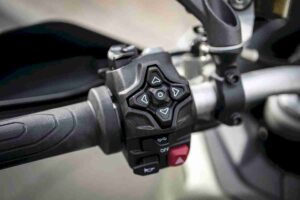 E num ritmo mais despachado, agradece- se a eletrónica capaz de criar uma moto à medida de cada utilizador, em função da experiência ou do estado de espírito. Mas também da carga a bordo, da existência de passageiro ou das condições da estrada. Vai do Wet ao Sport, passando pelo Urban e Enduro, sendo que este, além de desligar de imediato o ABS da roda traseira, viu revisto o gráfico de entrega de potência, oferecendo maior dinamismo na parte inicial do curso acelerador. Já que de eletrónica falamos, recordar que a escolha destes modos como de outras funcionalidades é feita através de novos comandos no guiador. Bem conseguidos ergonomicamente e que comandam um ecrã TFT de 5 polegadas. Interface completamente renovado e com várias linguagens (mas sem português!), muito mais intuitivo que o anterior, e que oferece a possibilidade de alteração mesmo durante a condução.Painel que permite também controlar a excelente suspensão eletrónica, com o conhecido sistema semi ativo Ducati Skyhook Suspension (DSS) a remeter os ajustes em compressão e extensão para a eletrónica, garantindo o funcionamento mais adequado a cada situação. Um equipamento que liberta o condutor de outras preocupações para lá da escolha quando conduz a solo, com bagagem e/ou passageiro. Além da opção num dos três modos (Dynamic, Comfort ou Low Grip) que, por sua vez podem ser desmultiplicados dentro do menu, para um total de 15 posições. Na verdade, as mudanças são bastante sensíveis e estão à distância de um toque no interruptor que permite alterar entre maior precisão e apoio em curva para uma condução mais desportiva, ou buscar maior conforto e estabilidade. Desta forma é possível a melhor adaptação a cada percurso e condições de estrada, sem mexer na resposta do motor ou no comportamento das outras intervenções eletrónicas. Por outro lado, a evolução do DSS levou a melhorias na estabilidade, minimizando o afundamento nas travagens mais fortes, como o baixar da traseira em aceleração.