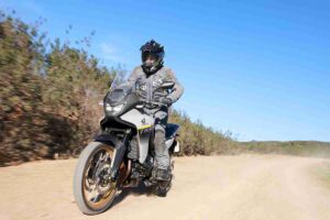 Mais sensíveis, às mudanças no sistema de amortecimento visam manter o conforto em estrada e melhorar o comportamento dinâmico fora dela. Assim, a forquilha invertida Showa SFF-CA, de funções separadas, surge agora mais macia. Isto é, com um pouco menos de força tanto em compressão como extensão. O que, na prática, quer dizer que as inalteradas bainhas de 43 mm de diâmetro e 200 mm de curso mm oferecem maior sensação desportiva sem beliscar o conforto.