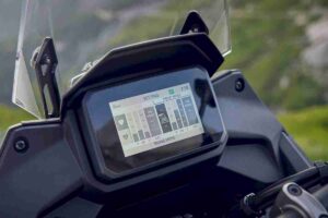 A modernização da Honda Transalp passou também pela adoção de um painel TFT renovado, o mesmo que pode ser visto na maioria dos modelos da gama (exceção feita à Africa Twin). Mantém uma diagonal de 5 polegadas, mas com ícones maiores e com conectividade através da aplicação Honda RoadSync. Painel que é facilmente controlado pelo conjunto de comandos retro iluminados, que tem como peça central um ‘joystick’ que é controlado com o polegar esquerdo em 4 direções.
