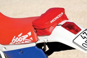 Especial agradecimento ao David Carvalho, proprietário deste exemplar, que está num estado de conservação que se aproxima a uma moto de concurso. A esse facto não é alheio o esforço e investimento feito ao longo do tempo para que a moto esteja totalmente original, mesmo quando existem peças que é mesmo muito difícil de obter, caso do silenciador de escape. Como ele próprio orgulhosamente contou, o plano inicial era comprar uma moto barata, num estado aceitável, destinada a umas voltinhas de “off-road” e na qual as eventuais quedas e mazelas não fossem motivo de preocupação, mas não contou com um imprevisto. A XR 600R acabou por o seduzir de tal forma que tomou uma decisão radical: devolver-lhe a forma e esplendor que tivera inicialmente!