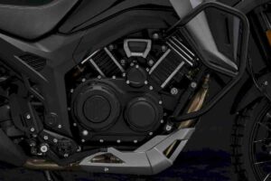 Quem olha para a ciclística percebe logo que a T1002VX não vem para inventar, mas sim para garantir uma condução equilibrada e confiante. A jante de raios sem câmara de 19” à frente e 17” atrás, as suspensões KYB totalmente ajustáveis e os pneus mistos Pirelli Scorpion Rally STR dão-lhe a capacidade de enfrentar estradas e trilhos sem receios. E quando falamos de travagem, encontramos um sistema da J.Juan, com discos de 320 mm à frente e 260 mm atrás, acompanhados pelo ABS Pro da Bosch. Tudo pensado para segurança e diversão sem sobressaltos.