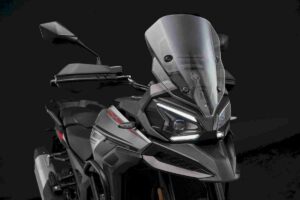 E como conforto é palavra de ordem, a T1002VX inclui cruise control, painel TFT de 7” com conectividade, punhos e assento aquecidos, tomada USB e de 12V, para-brisas ajustável e também descanso central. Para quem quer levar as aventuras mais longe, as malas de alumínio são opcionais, mas o peso declarado na ficha técnica já as contempla.
