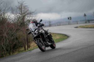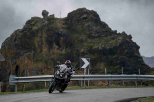 O peso de 265 kg sente-se nas manobras mais rápidas, mas não é um problema para uma moto pensada para viajar sem pressa. Em curva, notámos grande aprumo e estabilidade, embora tenhamos rodado sempre com piso molhado. Mas ficámos com a certeza de que, em situações normais, de piso seco e bom asfalto, os pousa-pés vão sofrer com algum desgaste… No modo Sport, o acelerador torna-se mais responsivo, por vezes até demais, e a injeção pode dar alguns “cortes” se fecharmos e abrimos o gás de forma abrupta. Nada de preocupante e algo a que os utilizadores se vão habituar rapidamente.