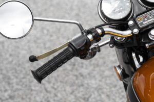 Até aí o mais comum era as motos virem equipadas apenas com pedal. Numa lógica conservadora e de ter um sistema de redundância a Honda optou por ambos os sistemas, sendo fácil de colocar em funcionamento das duas formas, desde que as válvulas estejam afinadas, os carburadores estejam bem sincronizados, a gasolina seja de qualidade, a compressão esteja dentro das tolerâncias… A posição de condução é excelente, apesar de para o meu gosto pessoal o guiador ser algo estreito, mas é uma moto muito engraçada de conduzir, apesar de a curvar se sentirem mais as suas limitações de quadro e suspensões, tal como ao nível da travagem.