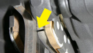O desgaste das pastilhas de travão também deve ser verificado mensalmente. Podem ser verificados sem desmontar nada: basta observá-las (com a ajuda de uma lanterna) através da janela especial no paquímetro. As pastilhas têm um indicador de desgaste: as ranhuras feitas no material de fricção devem estar sempre bem visíveis. Se não estiverem mais visíveis, é hora de substituí-los… e é melhor fazer isso logo!