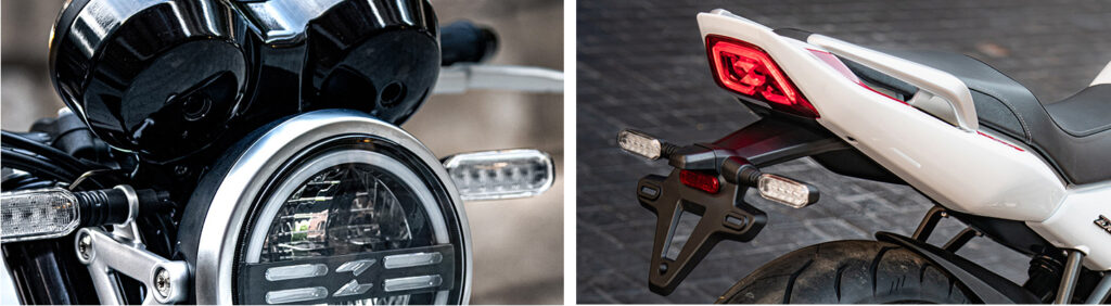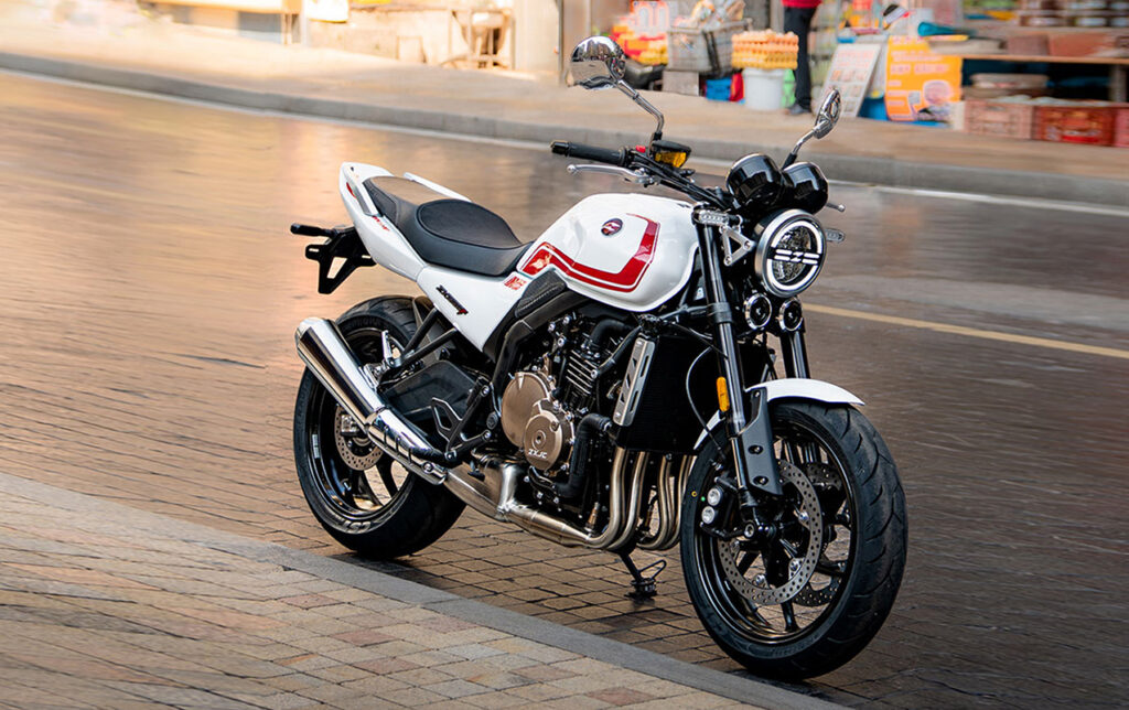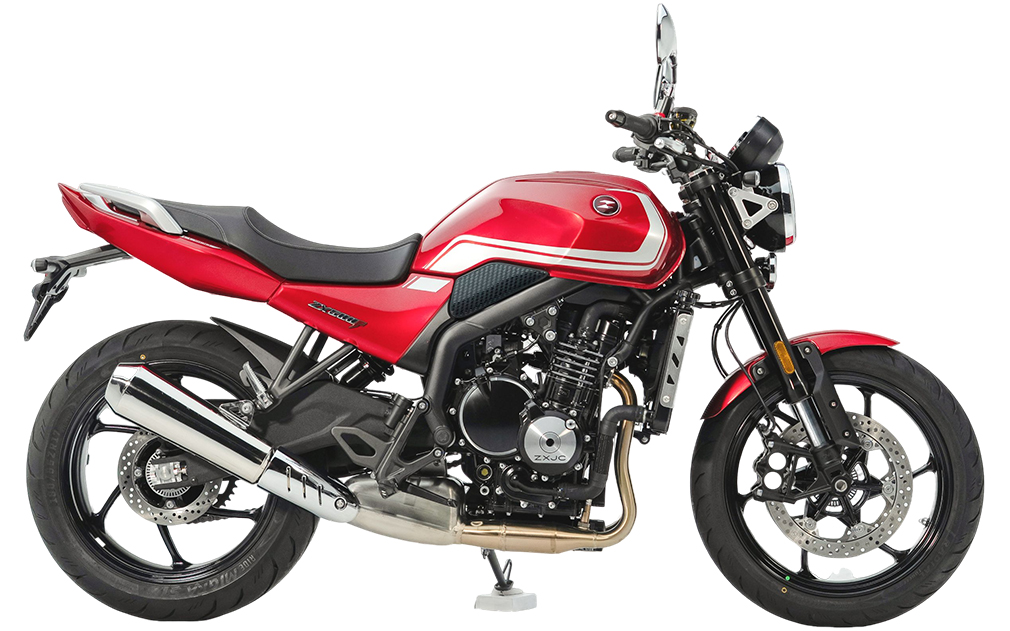 A ZXMoto entra agora na disputa na Europa, tendo apresentado na EICMA uma frota de máquinas promissoras, entre as quais a 500F, de inspiração retro. Equipada com um motor de quatro cilindros em linha de 470cc refrigerado a líquido, que produz 72,4 cv às 11.000 rpm e 7,7 kg/m de binário, a naked pesa apenas 175 kg com o depósito de 15,5 litros cheio.