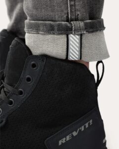 Quer esteja a conduzir ou a caminhar, o design de 5 bolsos das Shelby 3 Skinny Ladies foi criado para as mulheres urbanas que valorizam versatilidade e estilo. Como assinatura da casa, os bolsos traseiros contam com costuras exclusivas REV’IT!, símbolo de identidade, perfeitamente identificável para quem faz parte desta comunidade. A silhueta foi cuidadosamente estudada e especificamente desenvolvida para o corpo feminino, garantindo máximo conforto em todas as situações. Para a manter protegida sem sacrificar o estilo, estas calças incorporam discretamente os protetores de joelho SEESMART, ultrafinos e flexíveis, que permitem manter uma silhueta esguia e elegante. Pode ainda aumentar o nível de proteção com os protetores de anca SEESMART, vendidos separadamente.