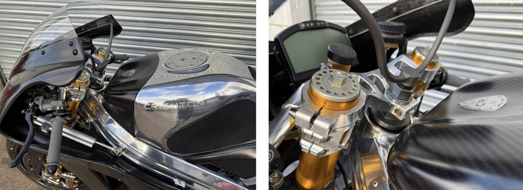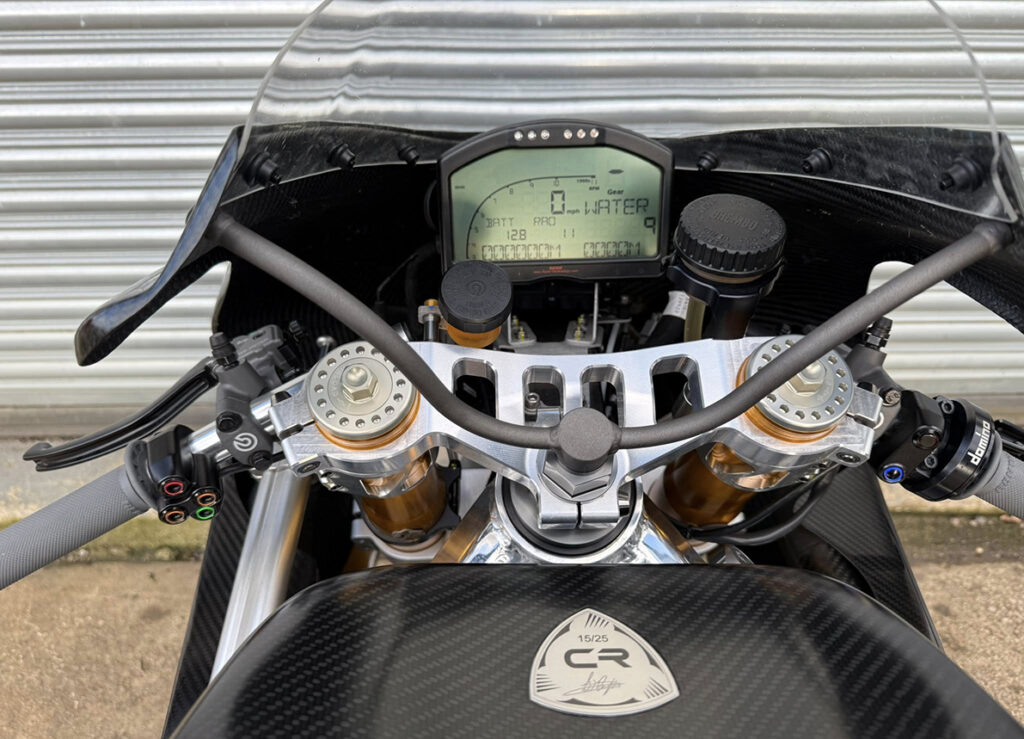 A CR700W produz uns incríveis 220 cv, com um peso a seco de apenas 129,5 kg. A moto teve apenas um dono desde nova e apenas três horas de utilização no total, incluindo dois dias de pista no circuito de Donington Park.