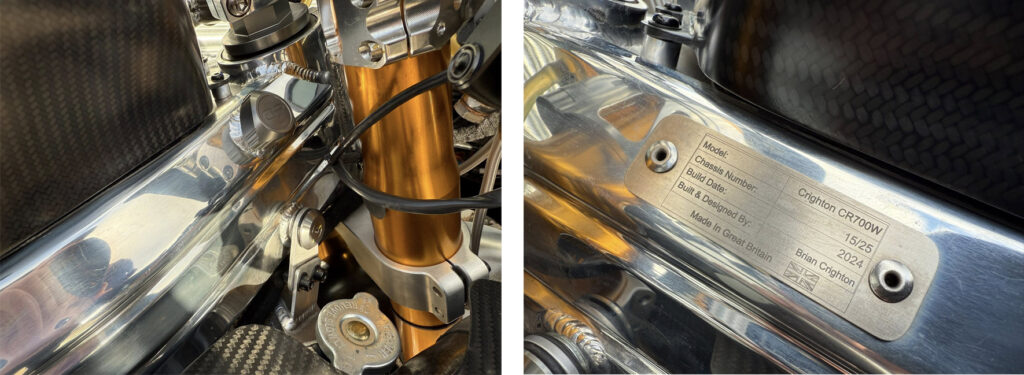 Isto equivale a uns impressionantes 319 cv por litro, segundo Crighton, o que é mais potente do que muitas motos de MotoGP ao longo dos anos e até do que o Ferrari de Formula 1 F2004. Para além dos impressionantes números de potência e binário, e da aparência em fibra de carbono, a CR700W ostenta uma ficha técnica igualmente impressionante.