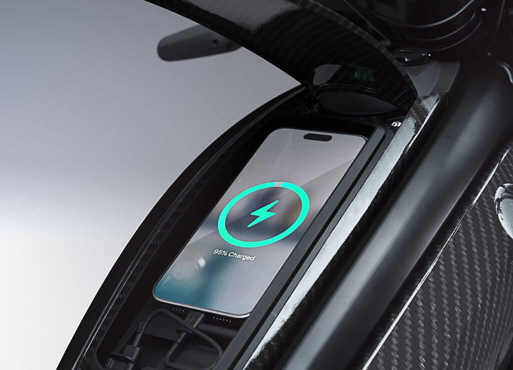 Concebido especificamente para veículos de duas rodas, este processador de alto desempenho permite conectividade 4G, Bluetooth e Wi-Fi, possibilitando a gestão do veículo em tempo real através do painel TFT interativo e circular. Para maior comodidade e segurança, a moto está equipada com um botão de Assistente de Voz. Acessível pelo telemóvel do piloto durante a pilotagem, esta funcionalidade permite comandos de voz simples para iniciar a navegação, reproduzir música e muito mais.