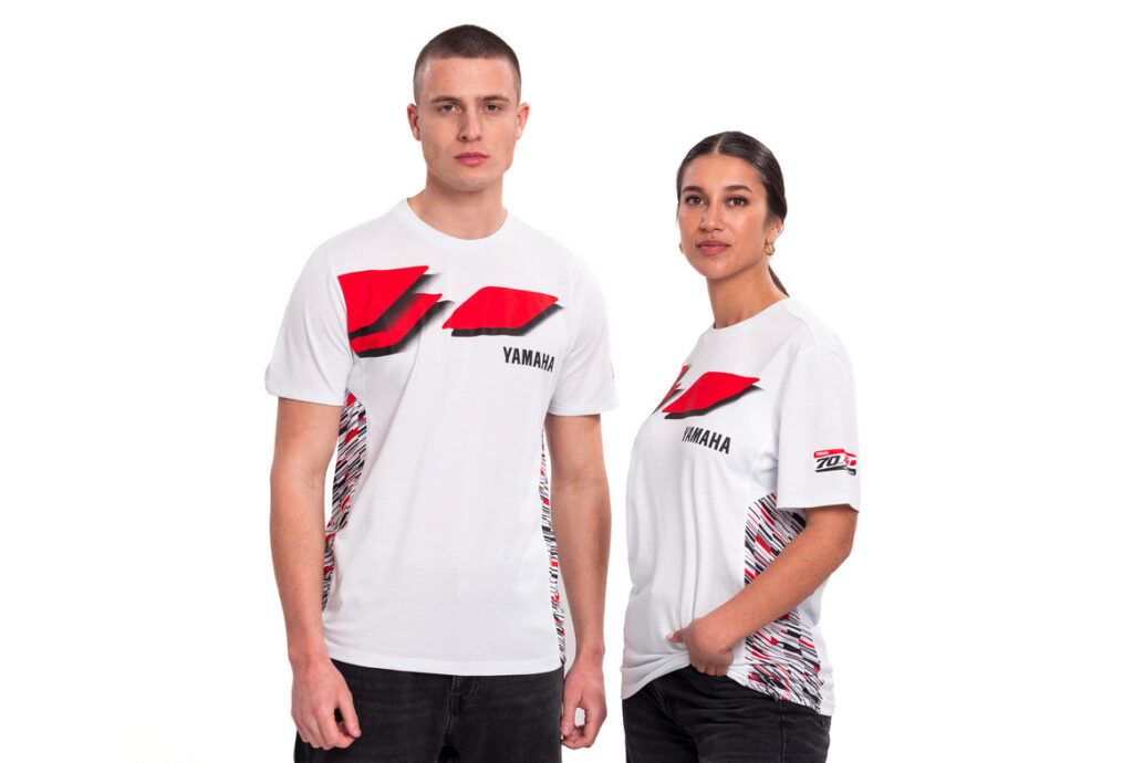 A Yamaha celebra o seu 70º aniversário com um olhar ao mundo do desporto, da cor e da emoção através de cores vibrantes numa gama de roupas práticas e estilosas, que é numerosa demais para lhes mostrar sequer uma pequena parte.