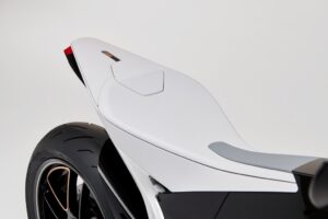O coração de propulsão elétrica está completamente integrado na parte central do quadro . O motor e as baterias são compactas, o que ajuda a manter o centro de gravidade baixo. A transmissão é por correia dentada, uma opção frequentemente adotada em veículos elétricos para reduzir ruído e manutenção.