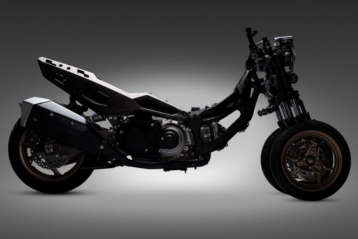 A foto vazada pela KYMCO mostra uma estrutura familiar: um quadro de alumínio com longarinas duplas e um motor bicilíndrico “deitado”, cujos cárteres revelam sua relação com a scooter desportiva AK 550. O nome “575” sugere uma nova versão deste motor com cilindrada ligeiramente maior, possivelmente superando os já generosos 50 cv da scooter de duas rodas.