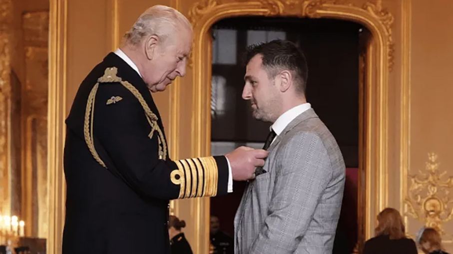 O piloto irlandês recebeu a Medalha do Império Britânico das mãos de Carlos III