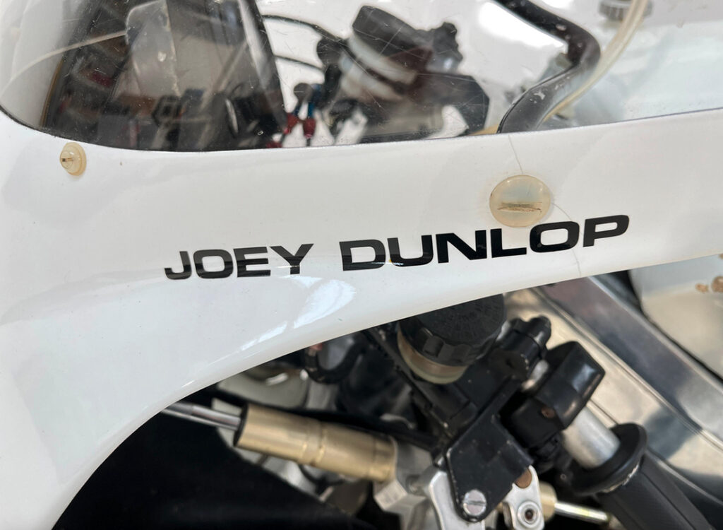 A RVF750 RC45 de 1999 foi uma das últimas motos com que Dunlop correu antes da sua morte e é uma moto de fábrica genuína da HRC.. de tal modo que tem um quadro e um motor de fábrica sem números de série.
