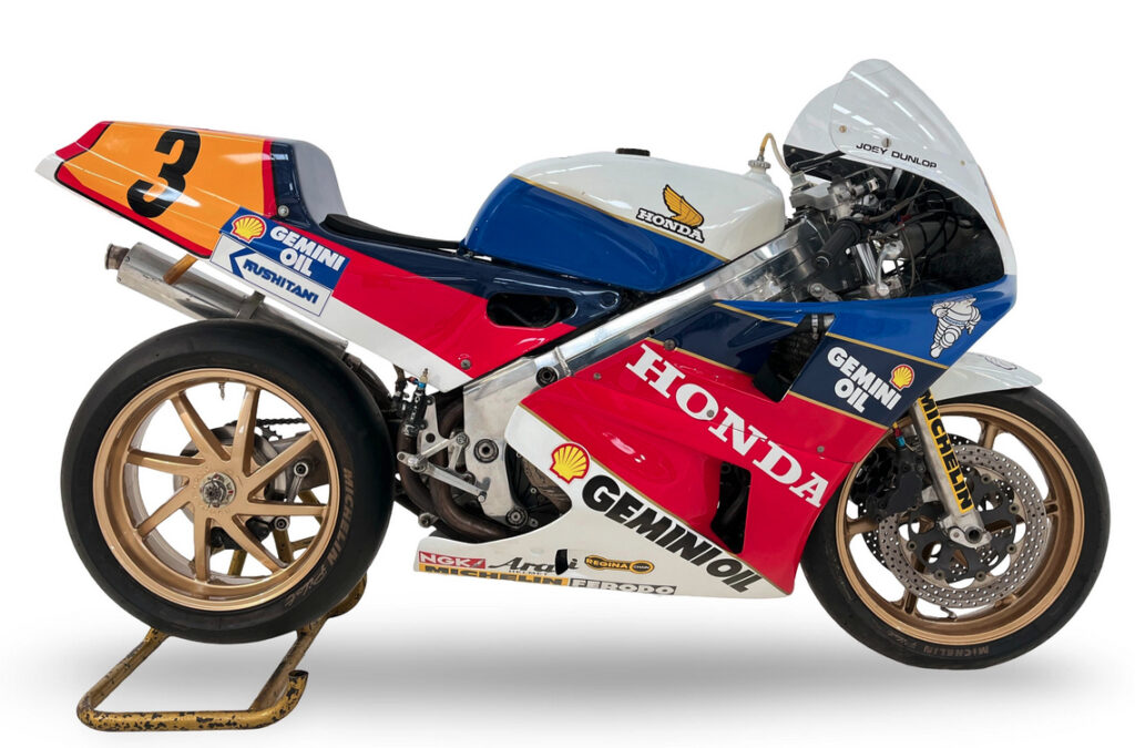 As duas motos Honda V4 ex-Joey Dunlop, ambas vencedoras de corridas, foram arrematadas por um total de 224.250 libras (quase 258.000 Euros) após terem sido leiloadas no dia 12 de outubro, num leilão realizado pela Bonhams Cars.
