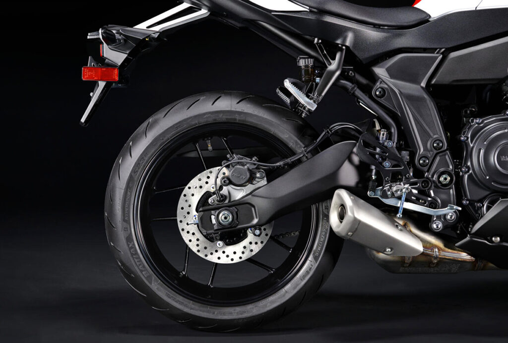 Para acomodar o aumento da rigidez, o suporte central agora usa placas de aço, com coberturas de plástico, para alcançar excelente estabilidade, enquanto a resposta da moto às manobras de direção e o feedback dos pneus foram otimizados. O braço oscilante também foi redesenhado para feedback mais nítido da estrada.