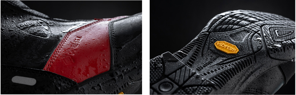 O design inconfundível reflete o espírito Ducati, e materiais de qualidade como o Gore-Tex e o Vibram® garantem um excelente desempenho e conforto sem abdicar do estilo Borgo Panigale